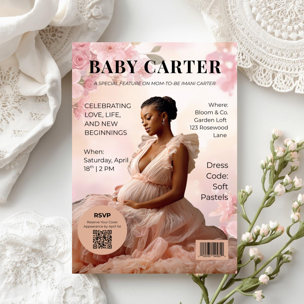 Celebrate love, life, and new beginnings with this luxury editorial-style baby shower stationery bundle. Designed with soft pastels, romantic florals, and a high-fashion magazine-inspired layout, this bundle is perfect for elegant, garden, or modern baby showers.