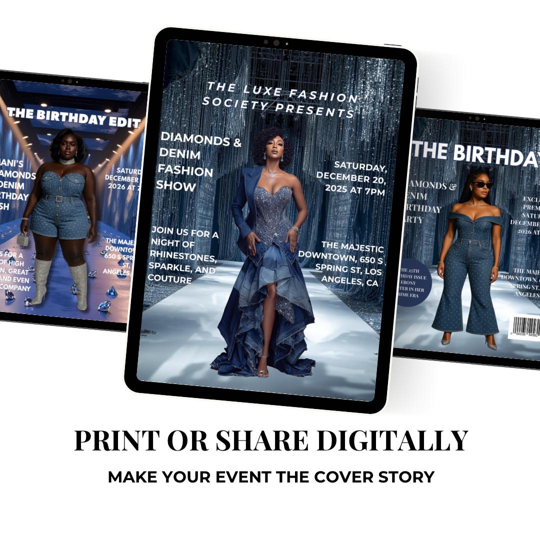 Diamonds & Denim Flyer Canva Template | Luxury Fashion Show Flyer | Editable Party Invite