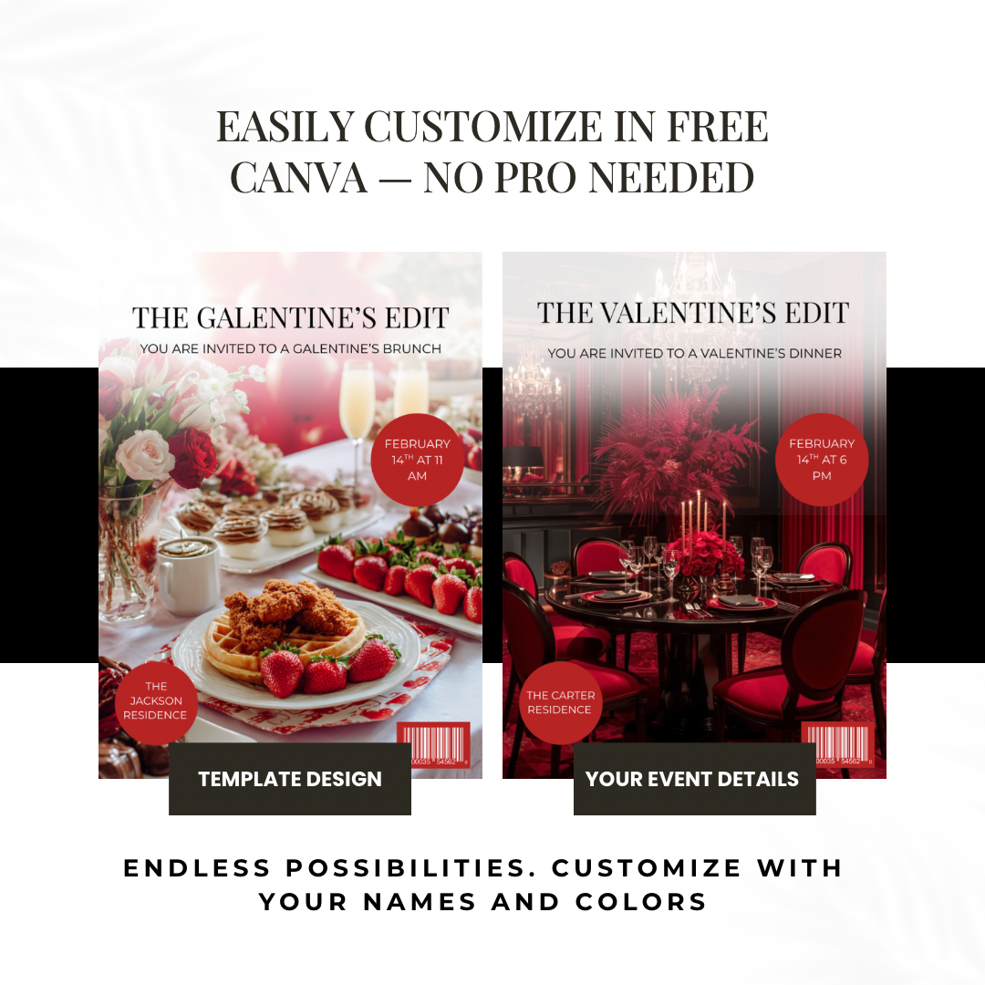 Fully editable in Canva, The Galentine’s Edit allows you to personalize all text details with ease, making it simple to create a polished, high-end invitation in minutes.