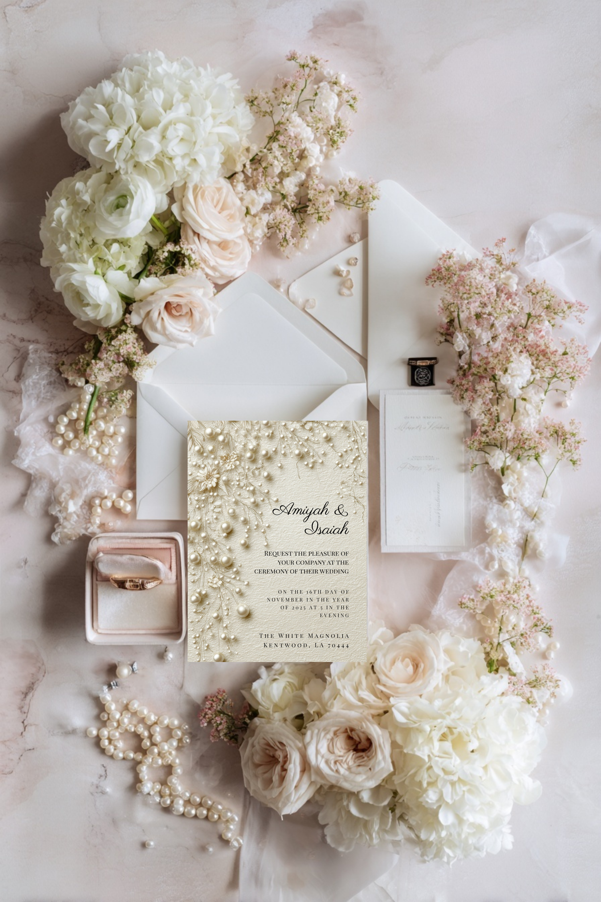 Perfect For: Modern weddings, pearl-inspired themes, elegant events, bridal brands, wedding planners, or DIY brides.